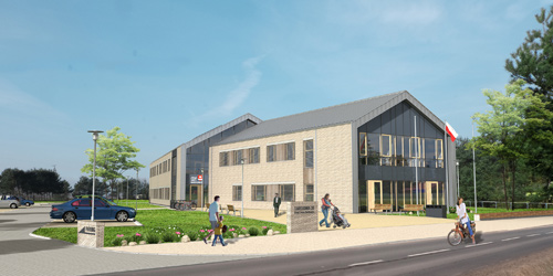 *koncepcja narzucona przez Zamawiającego z zakresie: bryły, formy i kolorystyki budynku, sporządzona przez pracownię AKKA.